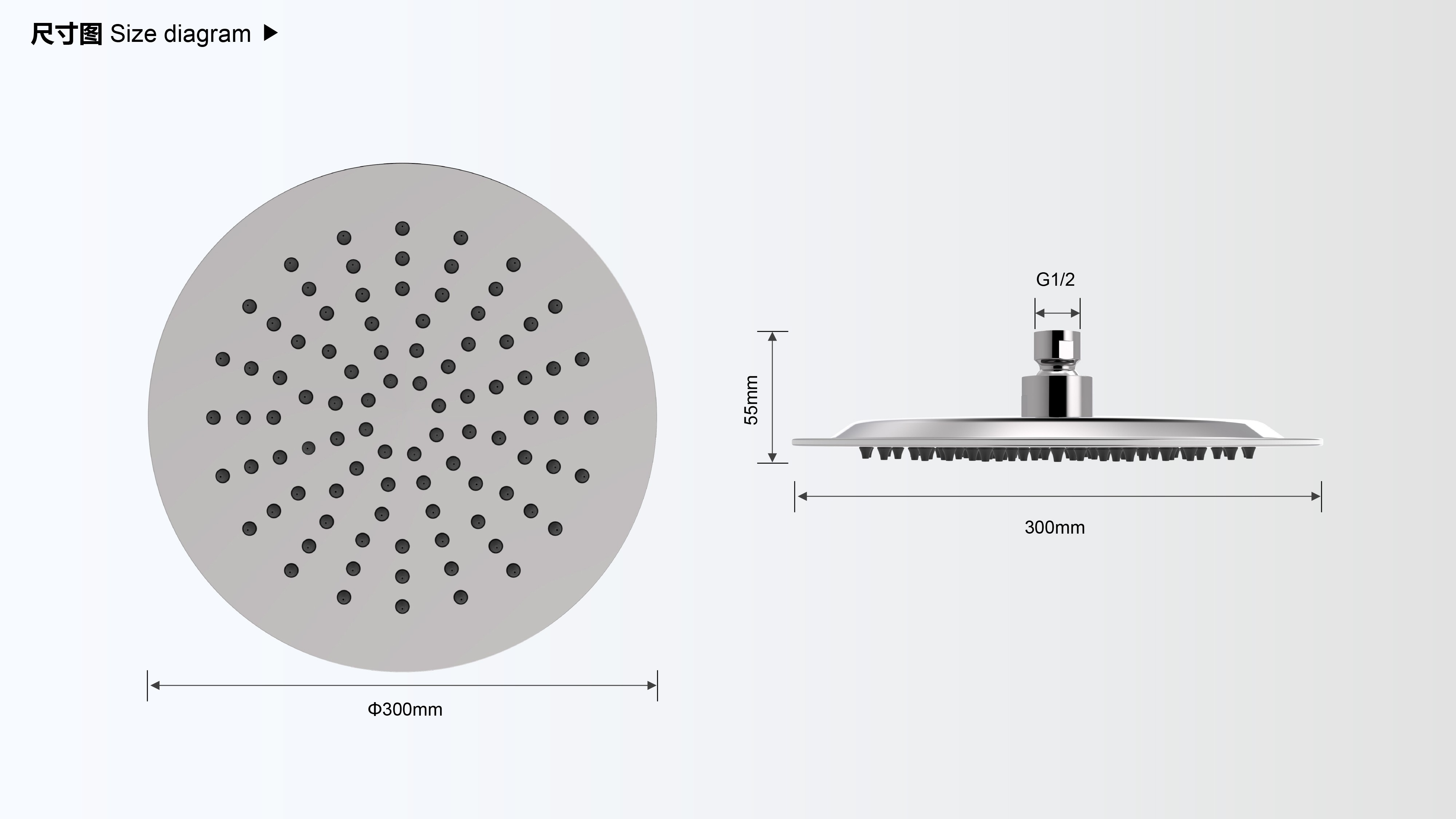 Size: Φ300mm;CUPC/ WaterSense/ WRAS/ ACS認(rèn)證